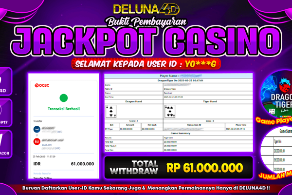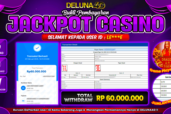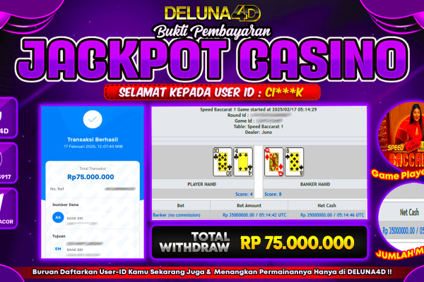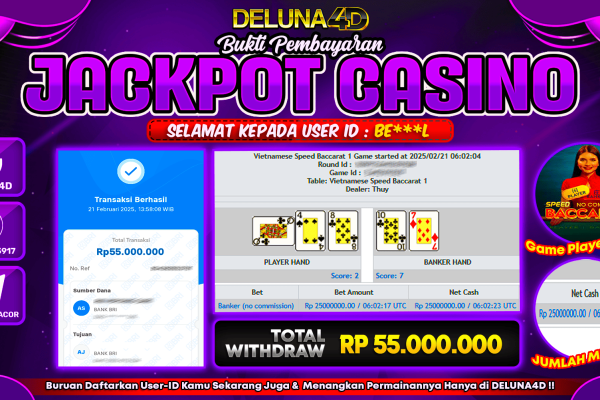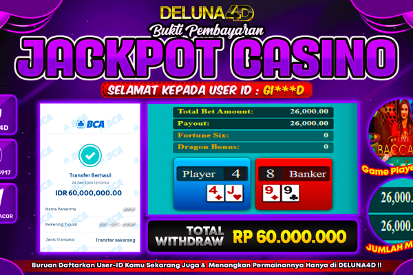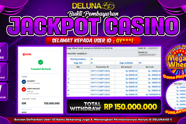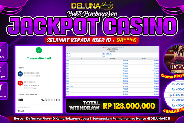 Selamat atas kemenangan User ID : DA***O, yang telah berhasil mendapatkan kemenangan di permainan LIVE CASINO LUCKY 6 ROULLETE dengan kemenangan sebesar Rp128.000.000,- . Setelah mengisi formulir withdraw, hanya dalam jangka waktu 3-5 menitan tim layanan pelanggan DELUNA4D telah berhasil mengirimkan semua saldo kemenangan ke User ID tersebut. Kami ucapkan Terima Kasih sebesar-besarnya pada pemenang…
