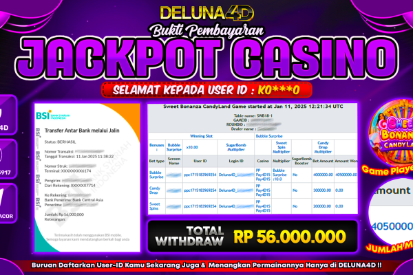 DELUNA4D JACKPOT LIVE CASINO SWEET BONANZA CANDYLAND Rp60.000.000,- LUNAS