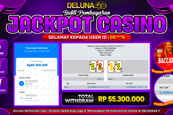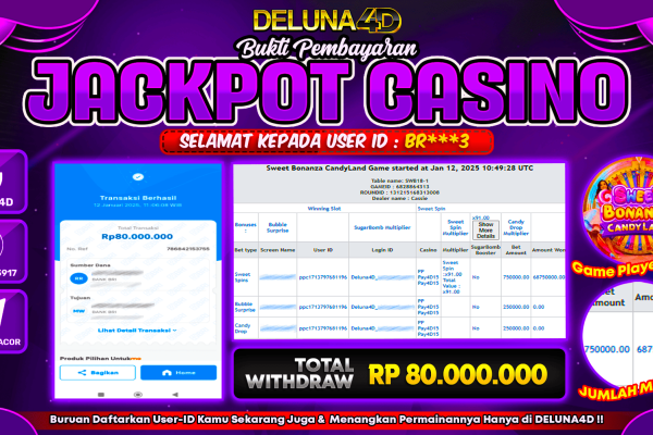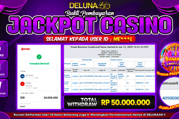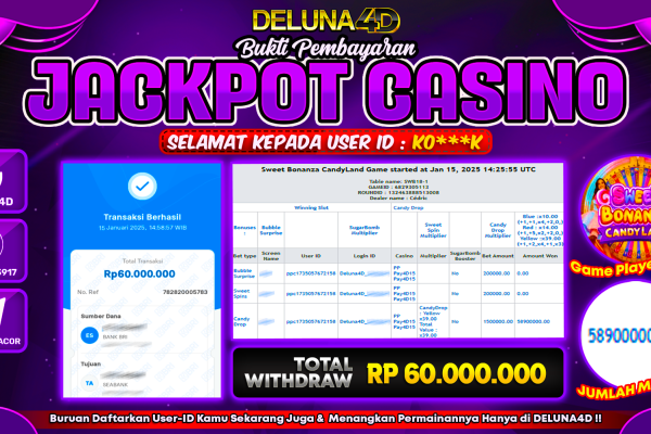 Selamat atas kemenangan User ID : KO***K, yang telah berhasil mendapatkan kemenangan di permainan LIVE CASINO SWEET BONANZA CANDYLAND dengan kemenangan sebesar Rp60.000.000,- . Setelah mengisi formulir withdraw, hanya dalam jangka waktu 3-5 menitan tim layanan pelanggan DELUNA4D telah berhasil mengirimkan semua saldo kemenangan ke User ID tersebut. Kami ucapkan Terima Kasih sebesar-besarnya pada pemenang…