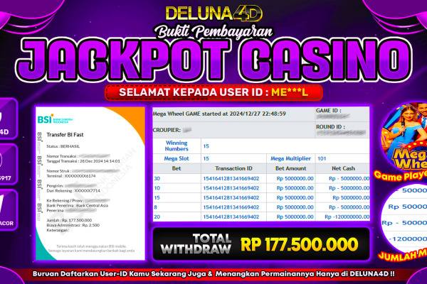 Selamat atas kemenangan User ID : AU***6 , yang telah berhasil mendapatkan kemenangan di permainan LIVE CASINO SWEET BONANZA CANDYLAND dengan kemenangan sebesar Rp50.000.000,- . Setelah mengisi formulir withdraw, hanya dalam jangka waktu 3-5 menitan tim layanan pelanggan DELUNA4D telah berhasil mengirimkan semua saldo kemenangan ke User ID tersebut. Kami ucapkan Terima Kasih sebesar-besarnya pada…