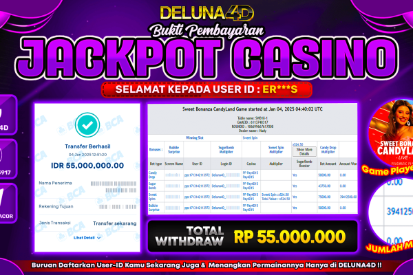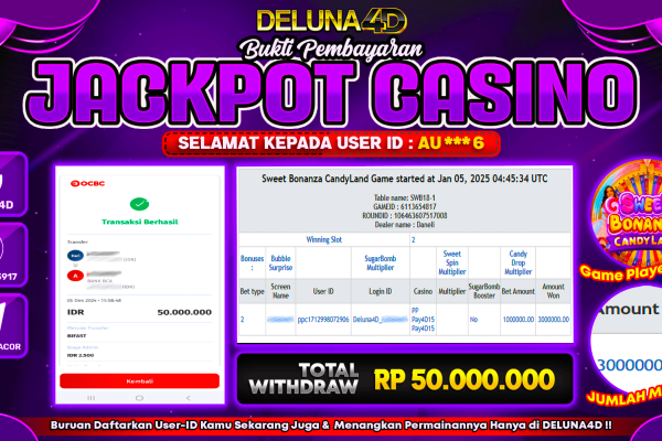 DELUNA4D JACKPOT LIVE CASINO SWEET BONANZA CANDYLAND Rp.50.000.000.,- LUNAS