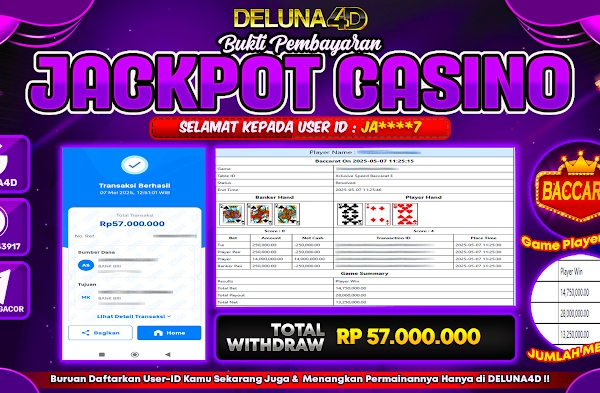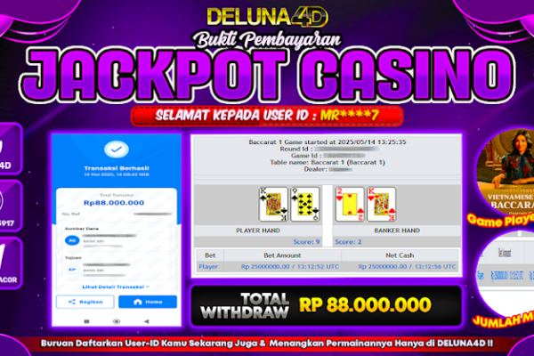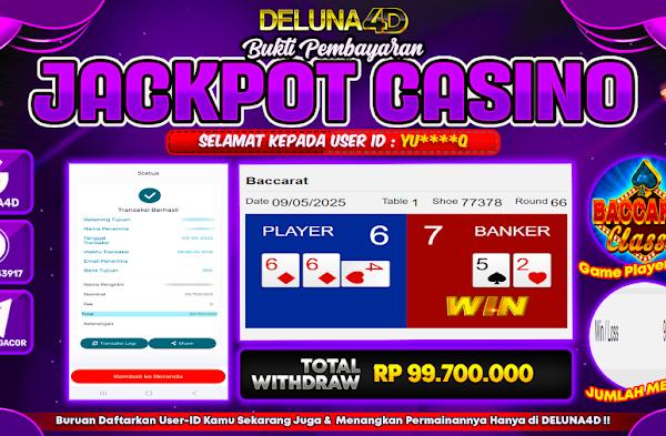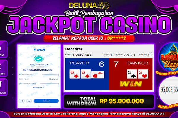 Selamat atas kemenangan User ID :  DR***S, yang telah berhasil mendapatkan kemenangan di permainan LIVE CASINO – BACCARAT CLASSIC dengan kemenangan sebesar Rp95.000.000,- . Setelah mengisi formulir withdraw, hanya dalam jangka waktu 3-5 menitan tim layanan pelanggan DELUNA4D telah berhasil mengirimkan semua saldo kemenangan ke User ID tersebut. Kami ucapkan Terima Kasih sebesar-besarnya pada pemenang…