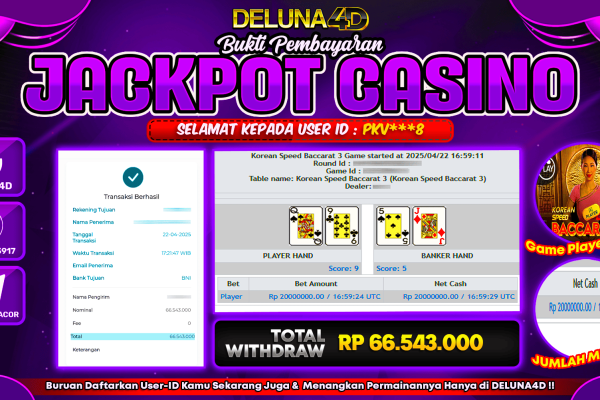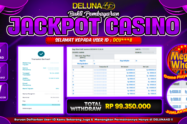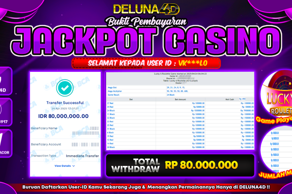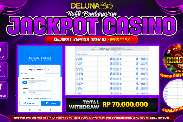 Selamat atas kemenangan User ID : MAS***7, yang telah berhasil mendapatkan kemenangan di permainan LIVE CASINO BRAZZILIAN MEGA ROULETTE dengan kemenangan sebesar Rp70.000.000,- . Setelah mengisi formulir withdraw, hanya dalam jangka waktu 3-5 menitan tim layanan pelanggan DELUNA4D telah berhasil mengirimkan semua saldo kemenangan ke User ID tersebut. Kami ucapkan Terima Kasih sebesar-besarnya pada pemenang…