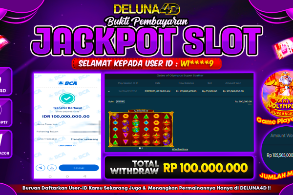 Selamat atas kemenangan User ID : WI***9 yang telah berhasil mendapatkan kemenangan di permainan SLOT GATES OF OLIMPUS SUPER SCATTER dengan kemenangan sebesar Rp100.000.000,- . Setelah mengisi formulir withdraw, hanya dalam jangka waktu 3 – 5 menitan tim layanan pelanggan DELUNA4D telah berhasil mengirimkan semua saldo kemenangan ke User ID tersebut. Kami ucapkan Terima Kasih…