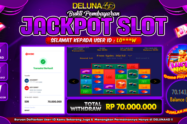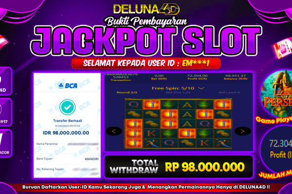 Selamat atas kemenangan User ID : RE***N, yang telah berhasil mendapatkan kemenangan di permainan SLOT GEMSTONE GOLD dengan kemenangan sebesar Rp83.000.000,- . Setelah mengisi formulir withdraw, hanya dalam jangka waktu 3 – 5 menitan tim layanan pelanggan DELUNA4D telah berhasil mengirimkan semua saldo kemenangan ke User ID tersebut. Kami ucapkan Terima Kasih sebesar-besarnya pada pemenang…