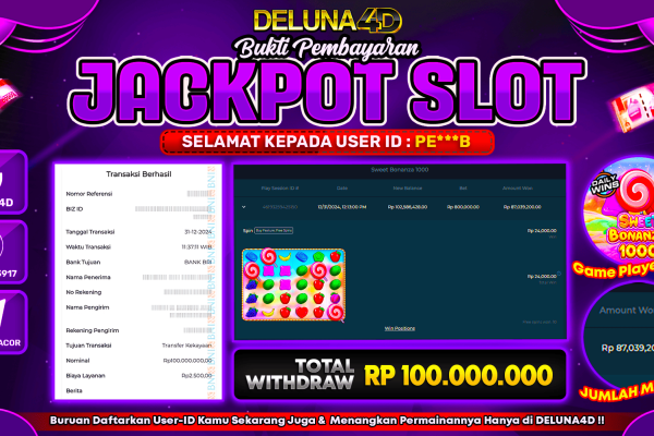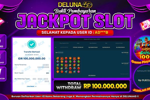 Selamat atas kemenangan User ID : BR***T, yang telah berhasil mendapatkan kemenangan di permainan SLOT GATE OF OLYMPUS dengan kemenangan sebesar Rp 75.000.000,- . Setelah mengisi formulir withdraw, hanya dalam jangka waktu 3 – 5 menitan tim layanan pelanggan DELUNA4D telah berhasil mengirimkan semua saldo kemenangan ke User ID tersebut. Kami ucapkan Terima Kasih sebesar-besarnya…