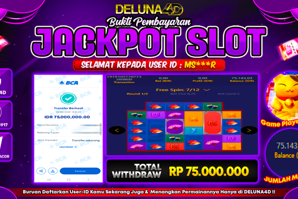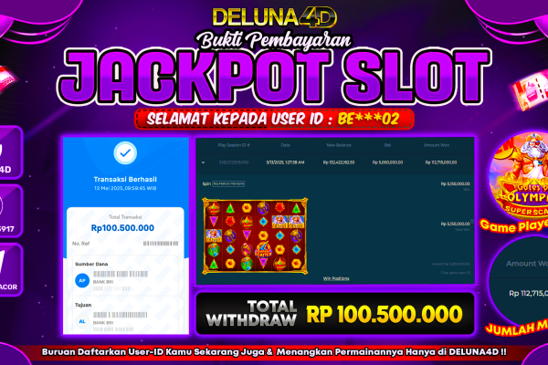 Selamat atas kemenangan User ID : EQ****3 yang telah berhasil mendapatkan kemenangan di permainan SLOT GATES OF OLYMPUS 1000 dengan kemenangan sebesar Rp88.000.000,- . Setelah mengisi formulir withdraw, hanya dalam jangka waktu 3 – 5 menitan tim layanan pelanggan DELUNA4D telah berhasil mengirimkan semua saldo kemenangan ke User ID tersebut. Kami ucapkan Terima Kasih sebesar-besarnya…