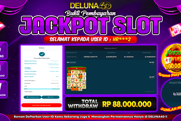 Selamat atas kemenangan User ID :  HR***2 yang telah berhasil mendapatkan kemenangan di permainan SLOT MAHJONG WINS 2 dengan kemenangan sebesar Rp88.000.000,- . Setelah mengisi formulir withdraw, hanya dalam jangka waktu 3 – 5 menitan tim layanan pelanggan DELUNA4D telah berhasil mengirimkan semua saldo kemenangan ke User ID tersebut. Kami ucapkan Terima Kasih sebesar-besarnya pada…