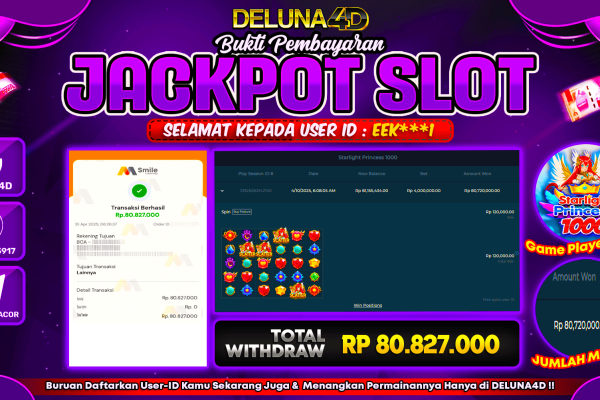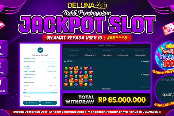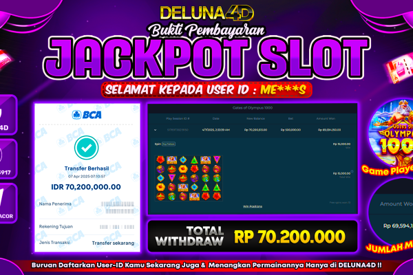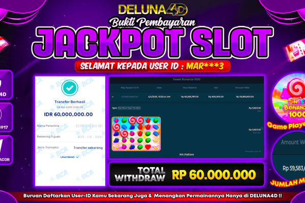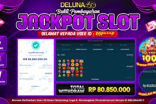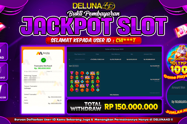 Selamat atas kemenangan User ID : CHI***T yang telah berhasil mendapatkan kemenangan di permainan SLOT GATES OF OLYMPUS 1000 dengan kemenangan sebesar Rp150.000.000,- . Setelah mengisi formulir withdraw, hanya dalam jangka waktu 3 – 5 menitan tim layanan pelanggan DELUNA4D telah berhasil mengirimkan semua saldo kemenangan ke User ID tersebut. Kami ucapkan Terima Kasih sebesar-besarnya…
