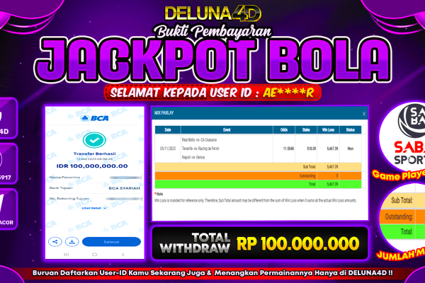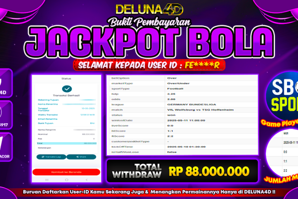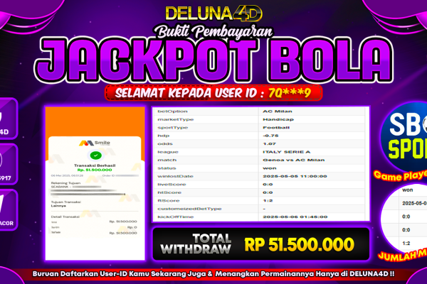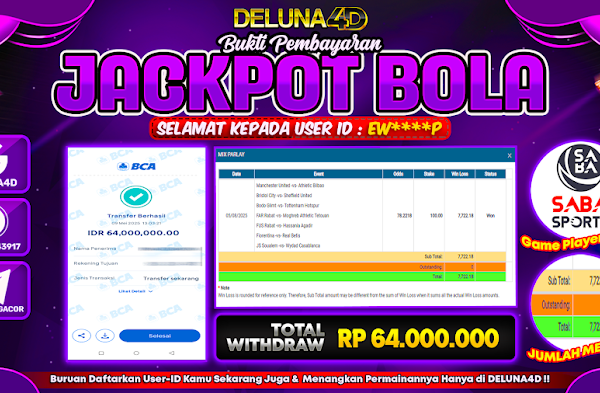 DELUNA4D JACKPOT SPORTBOOK SABA SPORTS Rp66.000.000,- LUNAS