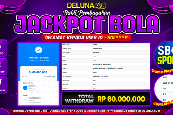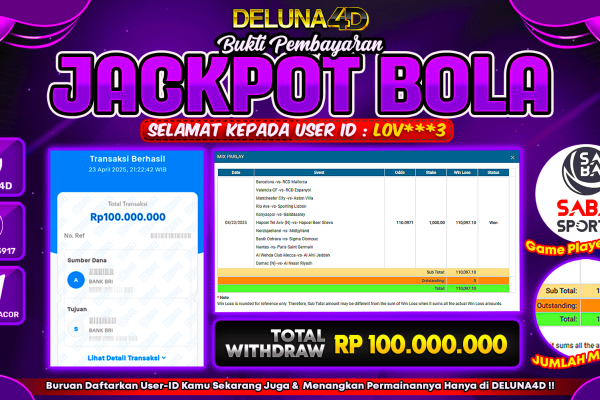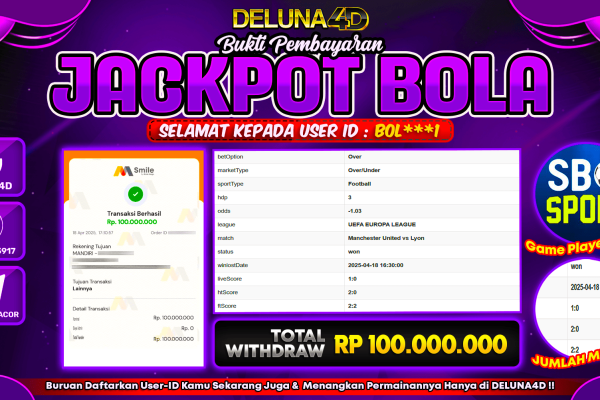 DELUNA4D JACKPOT SPORTBOOK SBO SPORTS Rp66.000.000,- LUNAS