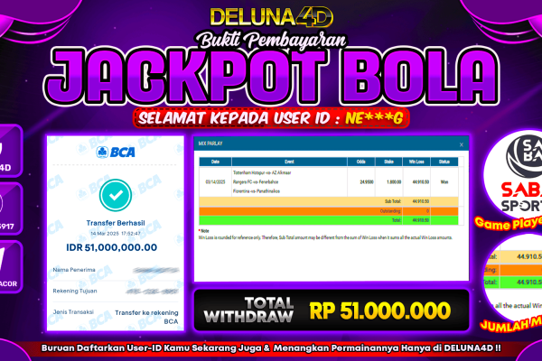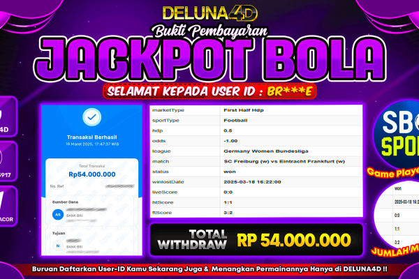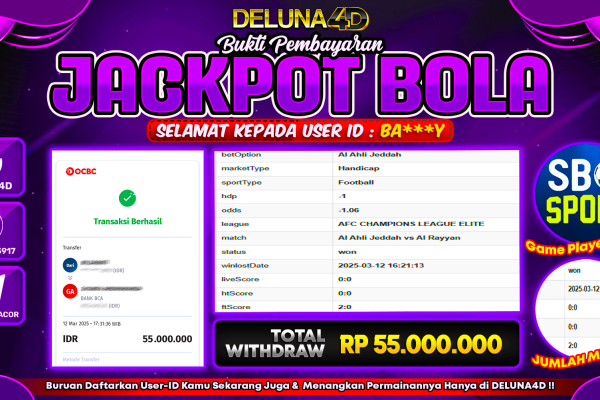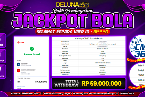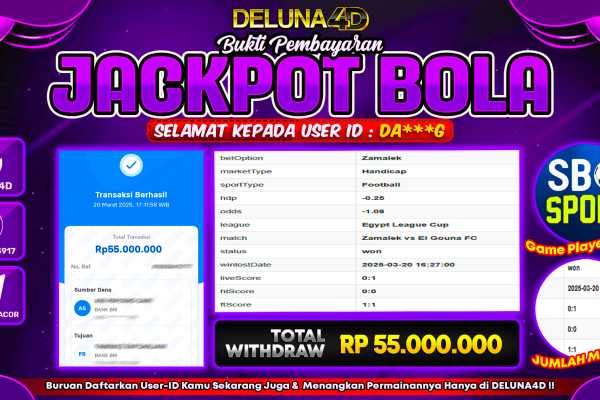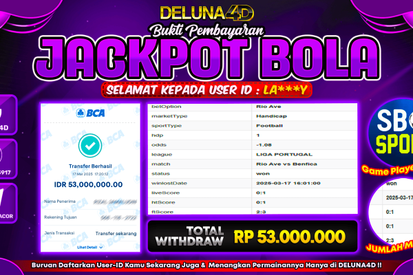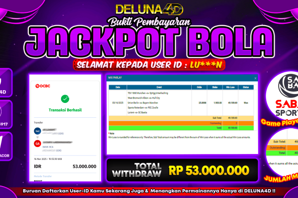DELUNA4D JACKPOT SPORTBOOK SBO SPORTS Rp53.000.000,- LUNAS