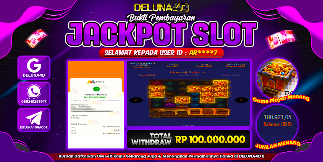 Selamat atas kemenangan User ID : AR****7 yang telah berhasil mendapatkan kemenangan di permainan SLOT GEMSTONES GOLD dengan kemenangan sebesar Rp100.000.000,- . Setelah mengisi formulir withdraw, hanya dalam jangka waktu 3 – 5 menitan tim layanan pelanggan DELUNA4D telah berhasil mengirimkan semua saldo kemenangan ke User ID tersebut.