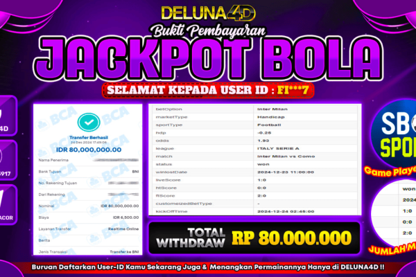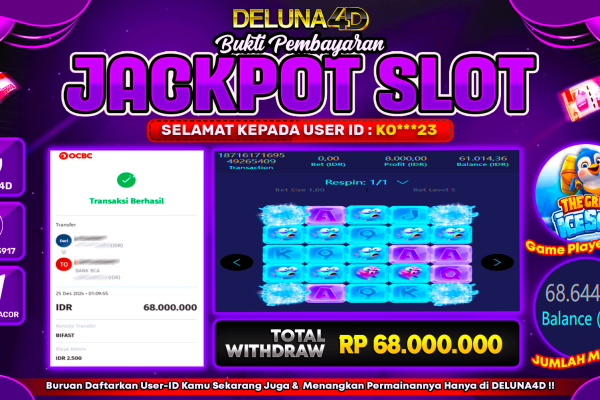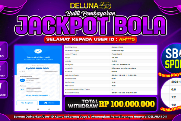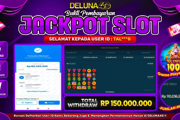 Selamat atas kemenangan User ID : TAL***0, yang telah berhasil mendapatkan kemenangan di permainan SLOT GATES OF OLYMPUS 1000 dengan kemenangan sebesar Rp 150.000.000,- . Setelah mengisi formulir withdraw, hanya dalam jangka waktu 3 – 5 menitan tim layanan pelanggan DELUNA4D telah berhasil mengirimkan semua saldo kemenangan ke User ID tersebut. Kami ucapkan Terima Kasih…