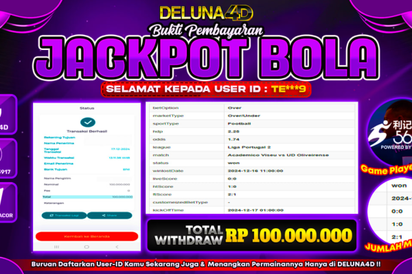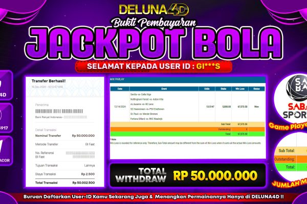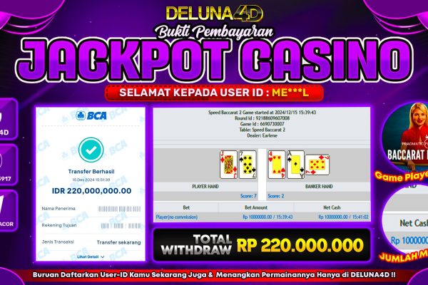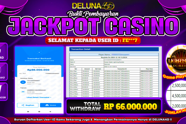Selamat atas kemenangan User ID : FE***7, yang telah berhasil mendapatkan kemenangan di permainan LIVE CASINO LIGHTNING ROULETTEdengan kemenangan sebesar Rp 66.000.000,- . Setelah mengisi formulir withdraw, hanya dalam jangka waktu 3 – 5 menitan tim layanan pelanggan DELUNA4D telah berhasil menegirimkan semua saldo kemenangan ke User ID tersebut. Kami ucapkan Terima Kasih sebesar-besarnya pada…